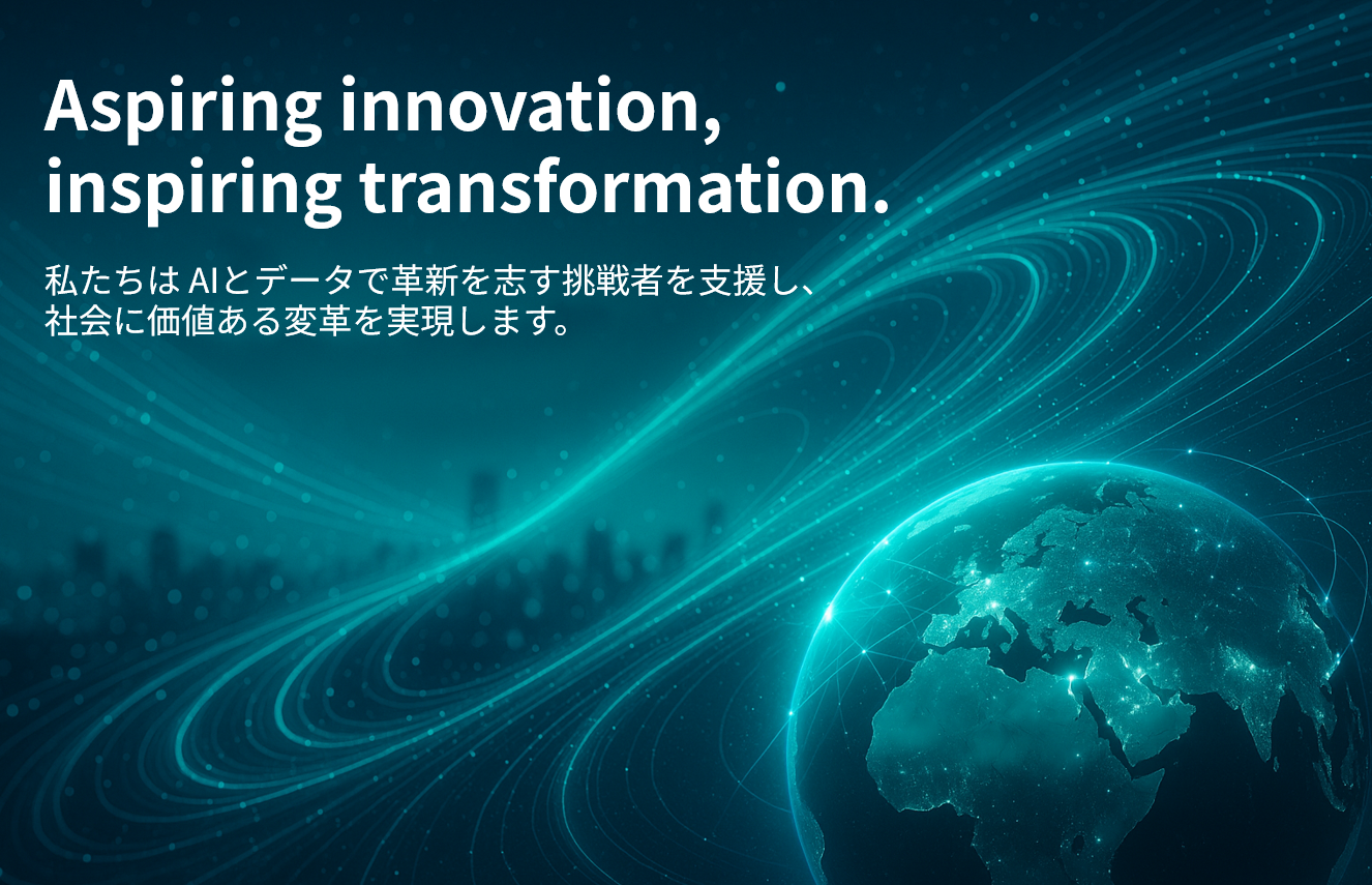 「Aspiring innovation, inspiring transformation.」の理念のもと、志を持って挑戦する人々の伴走者として、AIとデータが社会に価値ある変革をもたらす未来を共に実現していきます。